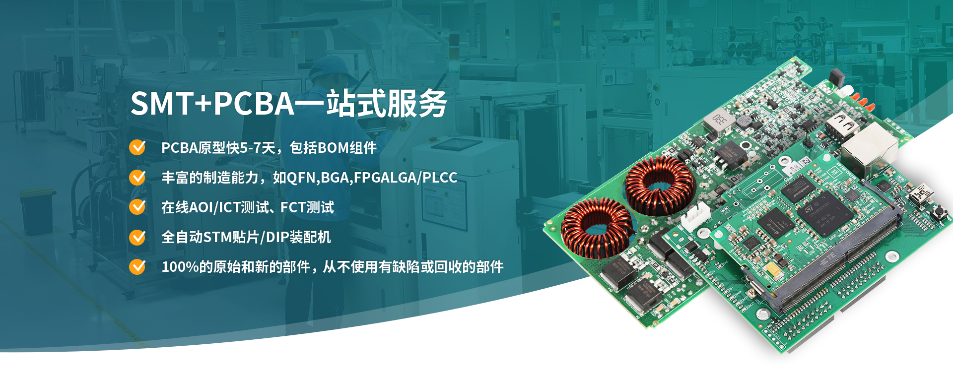 现有4条SMT贴片生产线,配备全新进口YAMAHA,YSM20R YSM10 YS24 YS12 、全自动锡膏印刷机、十温区回流炉、AOI、SPI等高端设备,贴装产能1200万点(CPH)/天,尤其擅长高精密、复杂度高的板子。